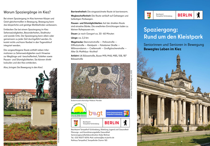 Ein neuer Flyer aus dem Bezirksamt ermutigt zum Kiezspaziergang rund um den Kleistpark. Er regt zur Erkundung an, nennt Sehenswürdigkeiten und Öffnungszeiten von Cafés und anderen Einrichtungen.
