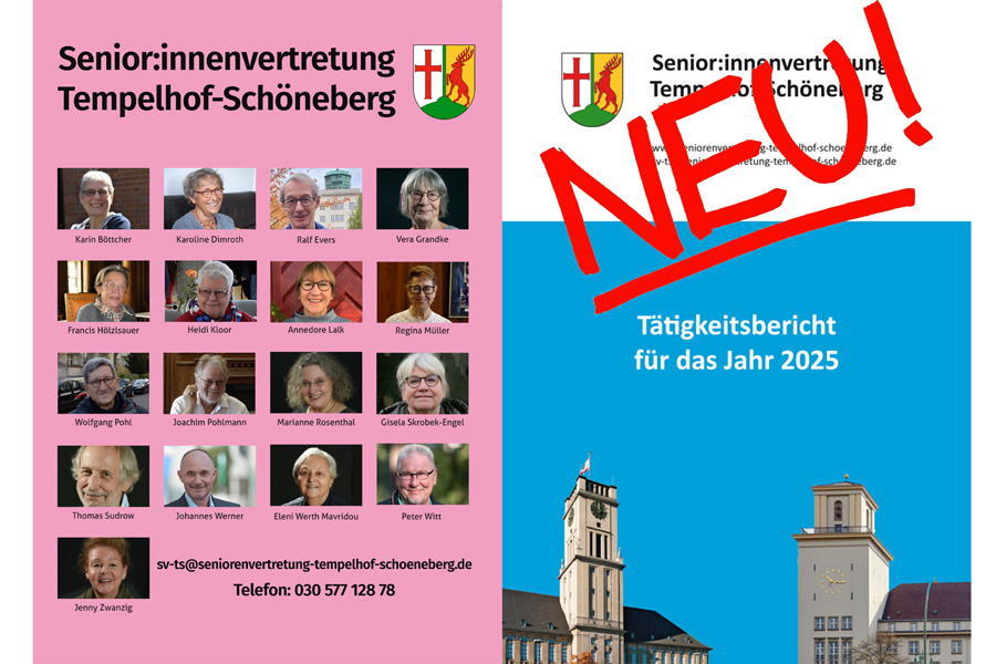 Die Senior:innenvertretungen sind nach dem Seniorenmitwirkungsgesetz gehalten, "der zuständigen Verwaltung über ihre Tätigkeit jährlich in geeigneter Form" zu berichten. Die SV Tempelhof-Schöneberg realisiert die gesetzlich vorgeschriebene Berichterstattung seit 2015 nicht nur gegenüber der Verwaltung, sondern vor allem gegenüber ihren Wähler:innen in Form eines öffentlichen Tätigkeitsberichtes. Zugleich wird der Bericht der Bezirksverordnetenversammlung und ihren Ausschüssen vorgelegt.