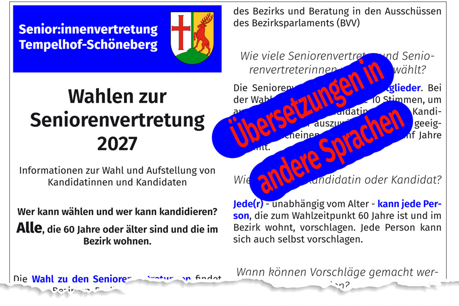 Die Wahlen zur Senior:innenvertretung finden innerhalb eines halben Jahres nach den Wahlen zur Bezirksverordnetenversammlung und den Wahlen zum Abgeordnetenhaus statt.