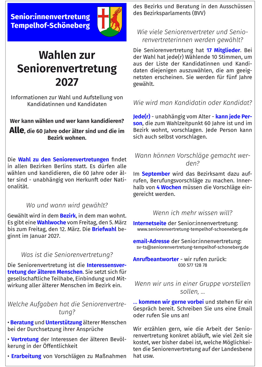 Seniorenvertretung im Land Berlin: Landesseniorenvertretung (LSV) und Landesseniorenbeirat (LSBB) →Ü60.berlin