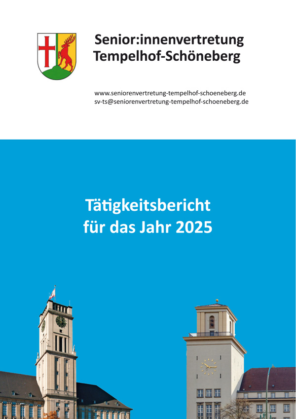Die Seniorenvertretungen sind nach § 3a des Berliner Seniorenmitwirkungsgesetzes gehalten, "der zuständigen Verwaltung über ihre Tätigkeit jährlich in geeigneter Form" zu berichten. Die Seniorenvertretung Tempelhof-Schöneberg realisiert die Berichterstattung seit einigen Jahren in Form eines öffentlichen Tätigkeitsberichtes: